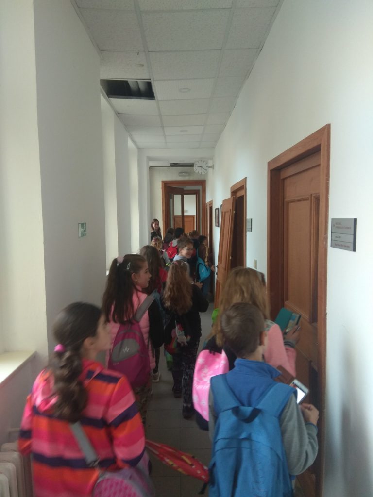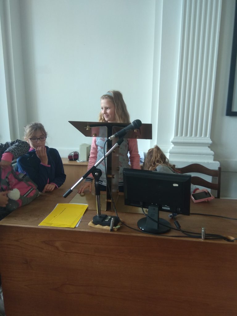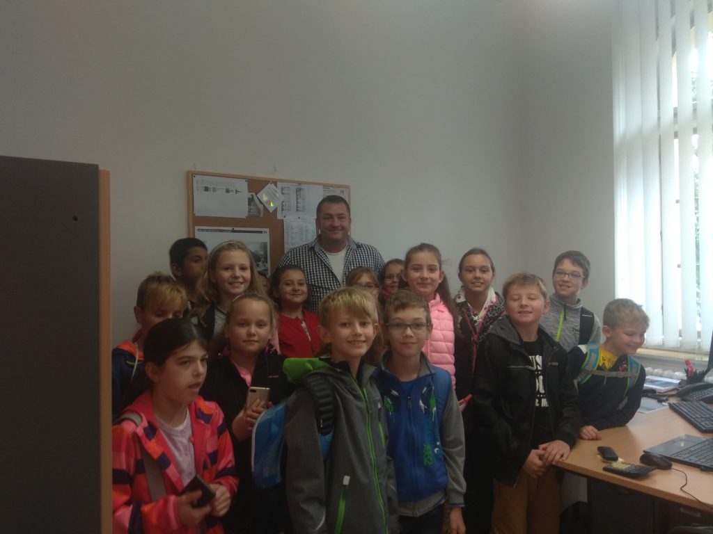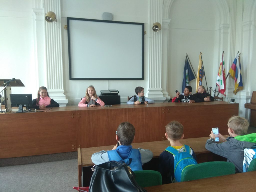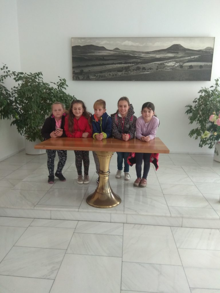 Třída 4. A vyrazila v pátek 27. 9. 2019 na komentovanou prohlídku MÚ v Lounech. Paní průvodkyně žáky seznámila s historií MÚ, objasnila, jaké odbory, zde najdeme a k čemu slouží. Nakoukli jsme se do většiny místností. Nejvíce se děti těšily na pracovnu pana starosty a místostarosty, byly zvědavé, kde se konají zasedání rady a zastupitelstva. Někteří i okusili, jak se sedí zastupitelům v lavicích, či jak se jim mluví do mikrofonů při různých jednáních. Využili jsme pozvání pana místostarosty Mgr. et Bc. Milana Rychtaříka k sobě do kanceláře, kde nám ukázal projekt a postup dostavby nové plavecké haly v Lounech. Vypadalo to tak úžasně, že se všichni ještě více a o to netrpělivěji těšíme, až bude konečně hotovo.