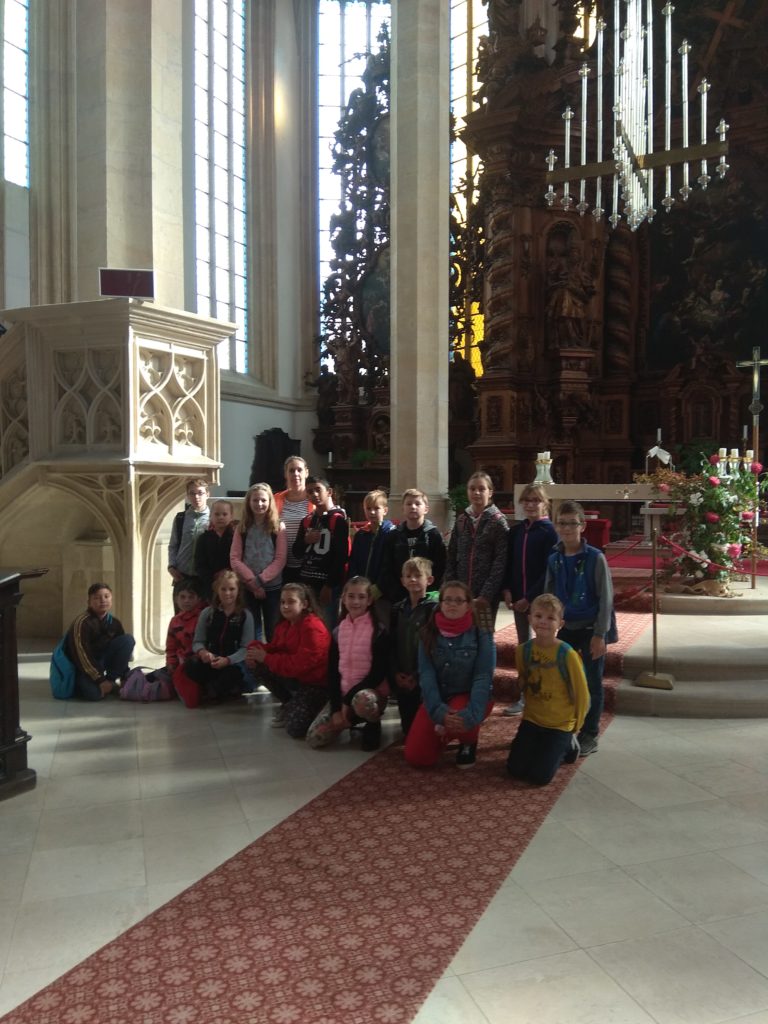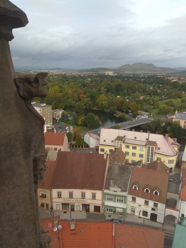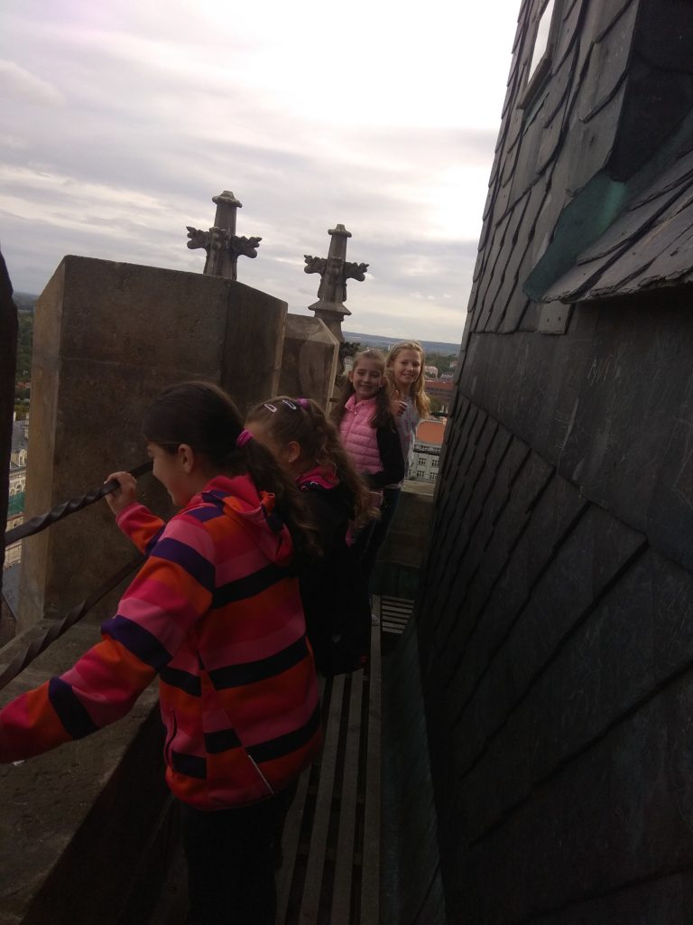 Naše další kroky vedly do Chrámu sv. Mikuláše. Zde se nás také ujala paní průvodkyně a žákům velmi poutavě přiblížila historii kostela, a zmínila se i tom, že zdejší oltář je jediný dřevěný v celé Evropě. A pak nás čekal výstup na věž. Vyšlapali jsme 150 schodů. Odměnou nám byl nádherný výhled na celé České středohoří.