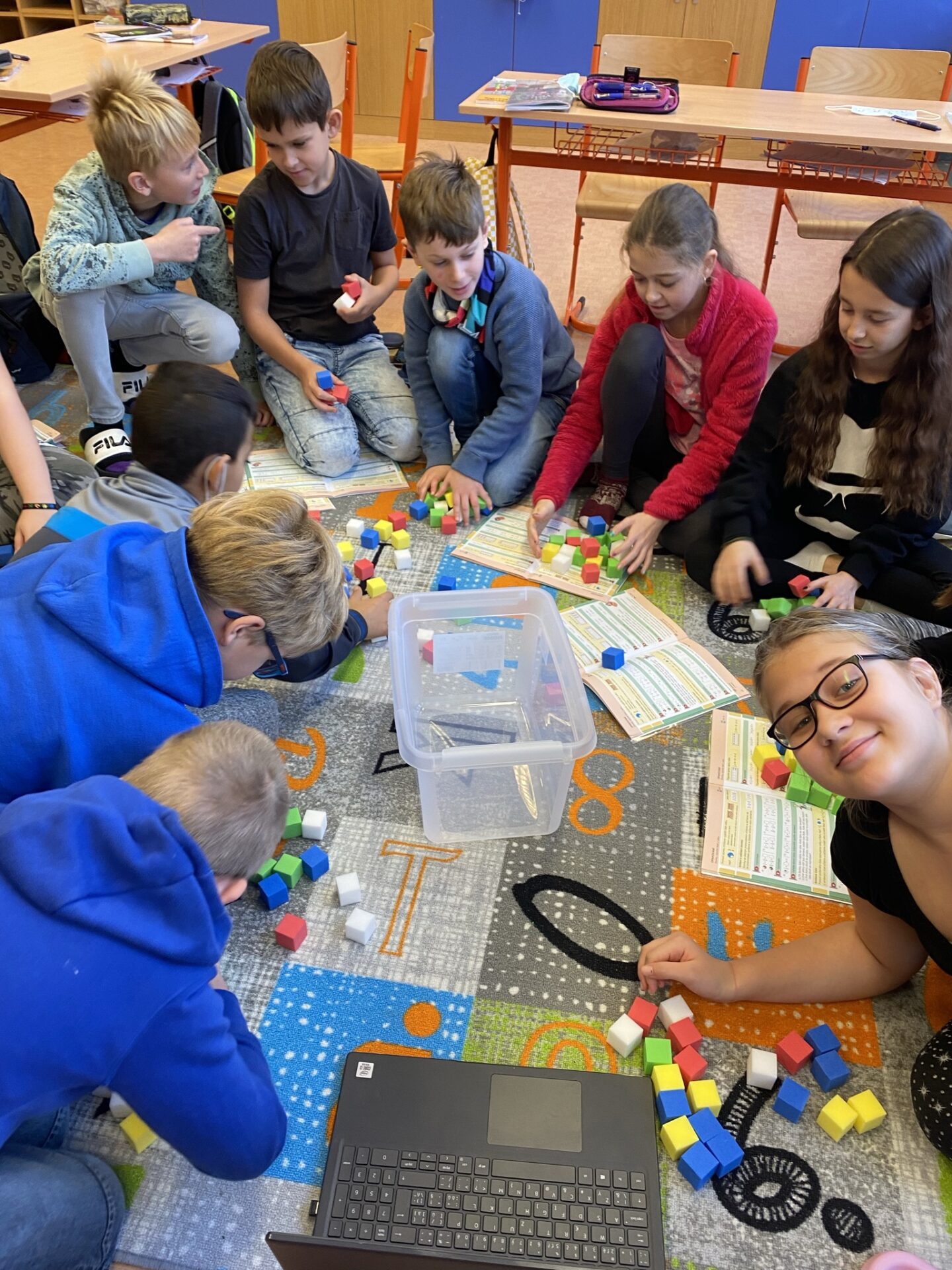 V 5. B jsme zahájili výuku matematiky s prvky Hejného metody. Pro pochopení a proniknutí do probírané látky je nezbytná vlastní zkušenost. Výuku matematiky proto orientujeme na budování schémat, které z vlastní zkušenosti vychází. Na tom je Hejného metoda založená. Žáci se učí objevovat a přicházet na věci sami. Díky pomůckám, které škola zakoupila, je matematika mnohem zábavnější a přínosnější.