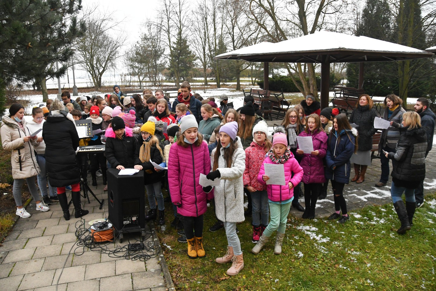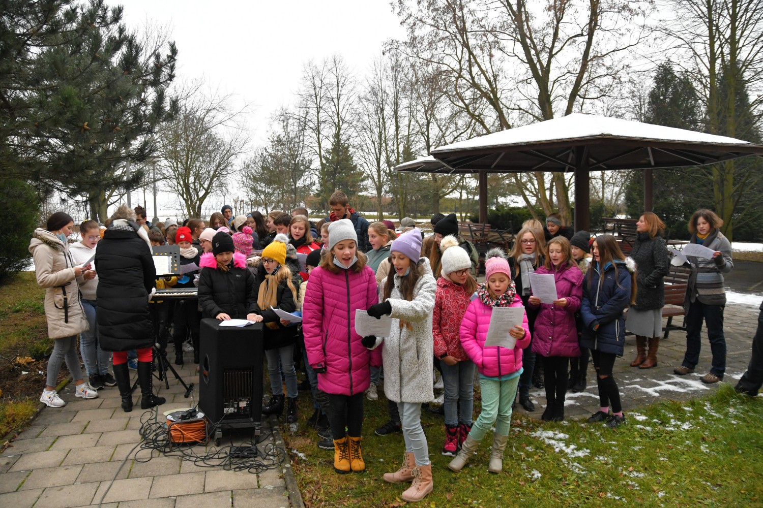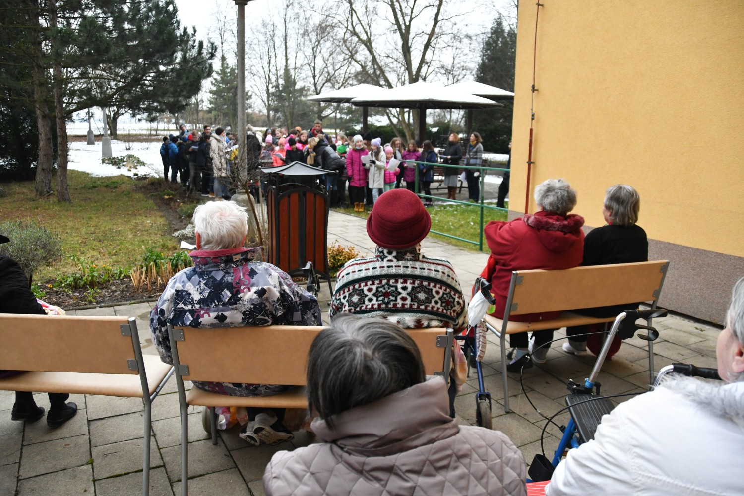 V úterý 7. 12. 2021 jsme zazpívali klientům domova pro seniory v Lounech vánoční koledy. Téměř stovka našich žáků pod vedením paní učitelky Evy Maťátko zazpívala pod okny a balkony babičkám a dědečkům. Odměnou byl potlesk a rozzářené obličeje.