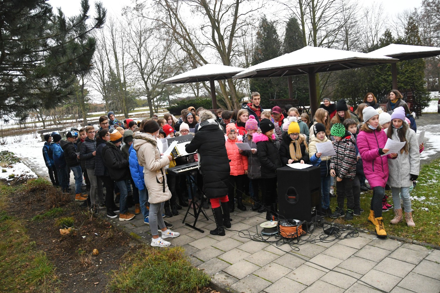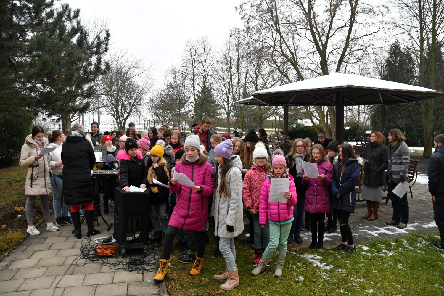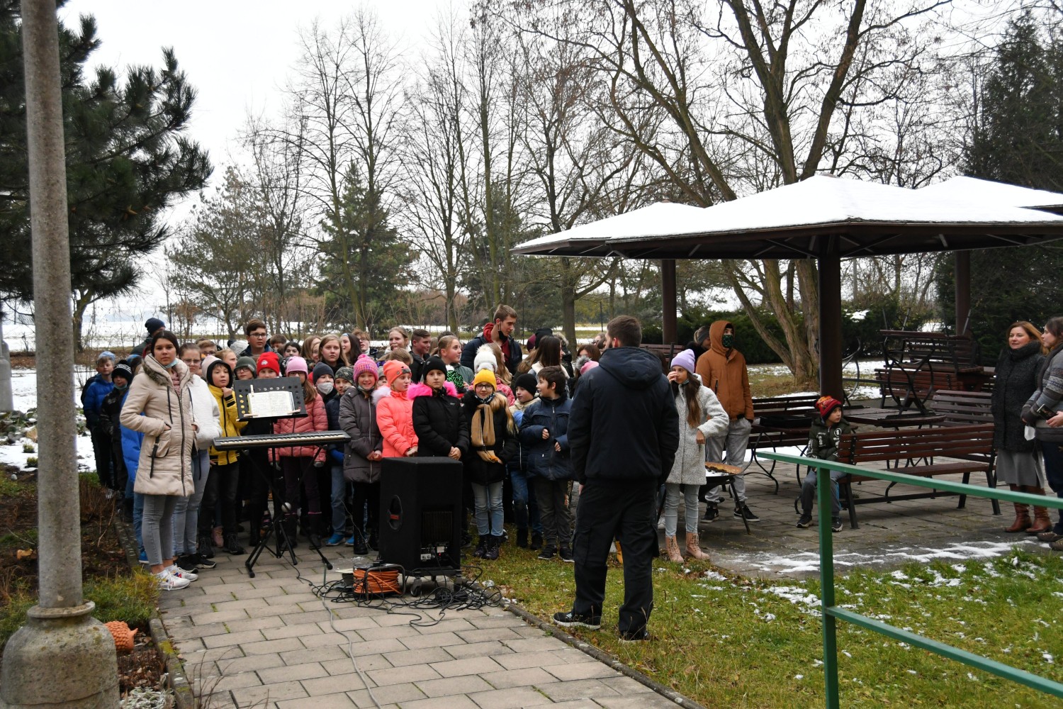 V úterý 7. 12. 2021 jsme zazpívali klientům domova pro seniory v Lounech vánoční koledy. Téměř stovka našich žáků pod vedením paní učitelky Evy Maťátko zazpívala pod okny a balkony babičkám a dědečkům. Odměnou byl potlesk a rozzářené obličeje.